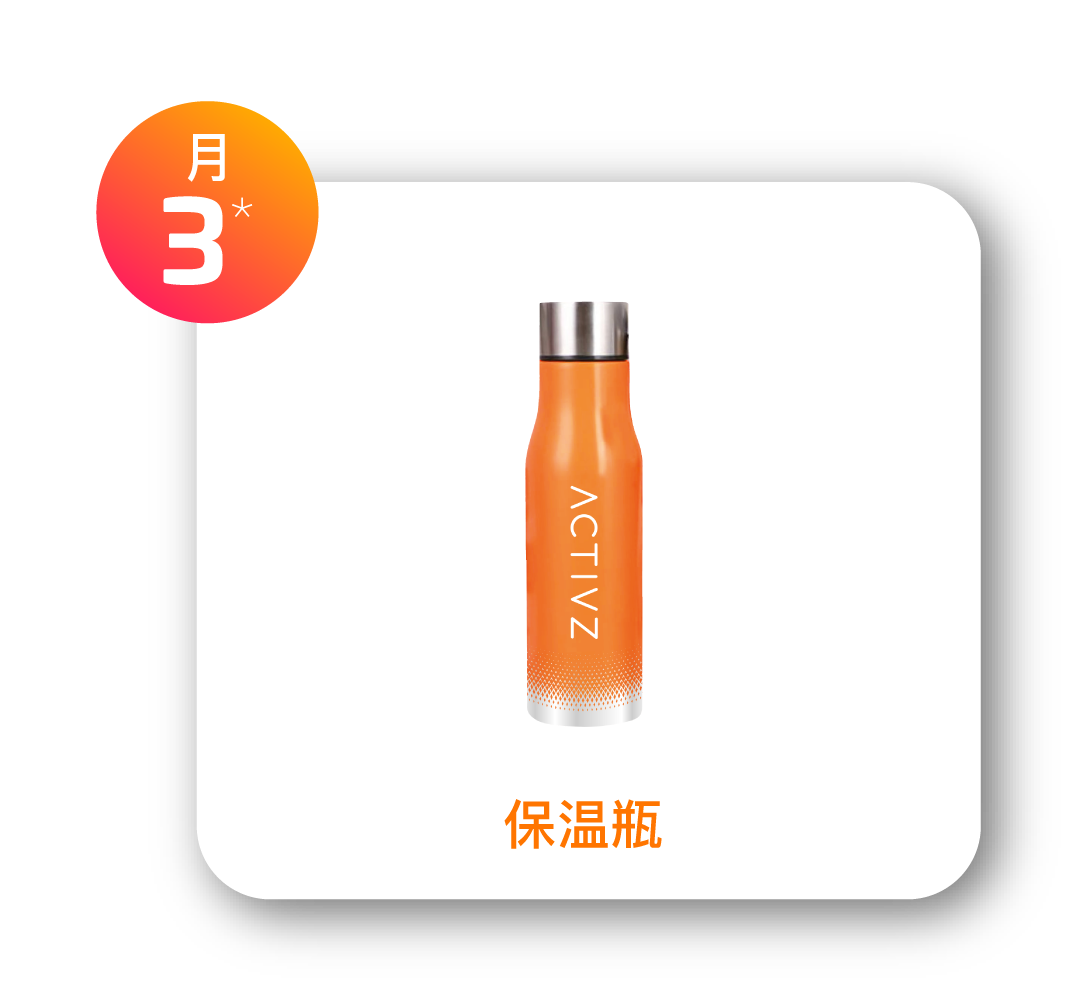 我们设计了专属的自动订购计划,以奖励你通过长期使用 ACTIVZ 产品对自己和健康的承诺。 作为一名尊贵且活跃的经销商,月度自动订购订单至少达到100 PV,你将自动解锁专属奖励,以表彰我们对你忠诚度的感激之情。